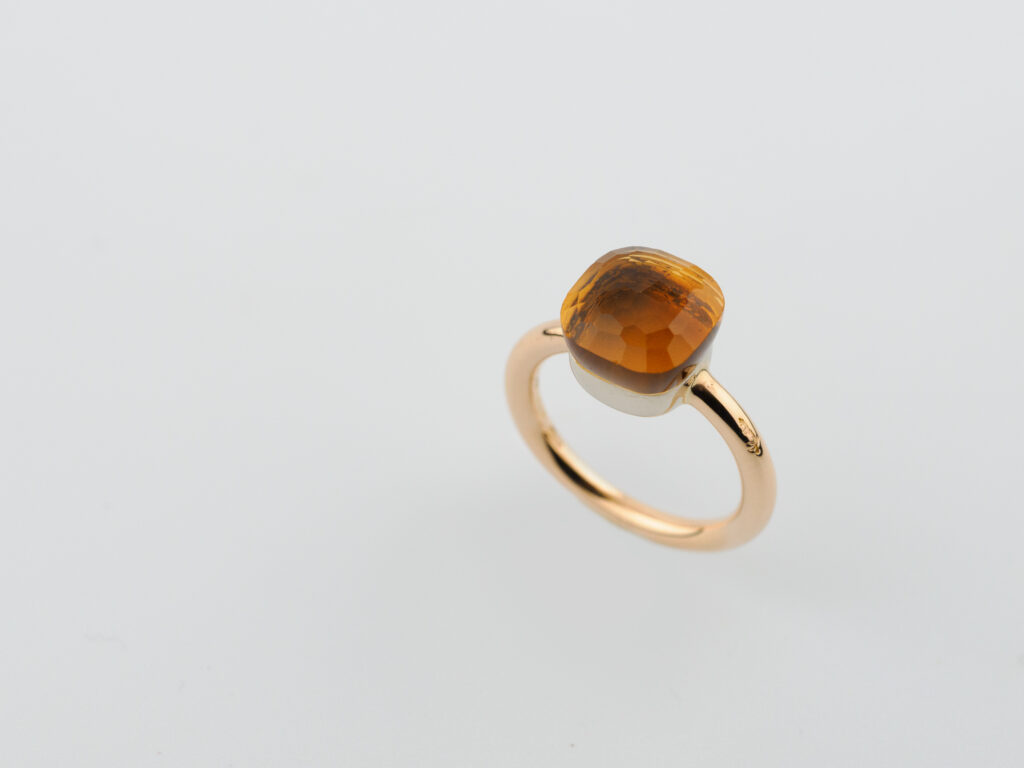 Anello oro rosa 18kt con quarzo citrino firmato “Pomellato”.