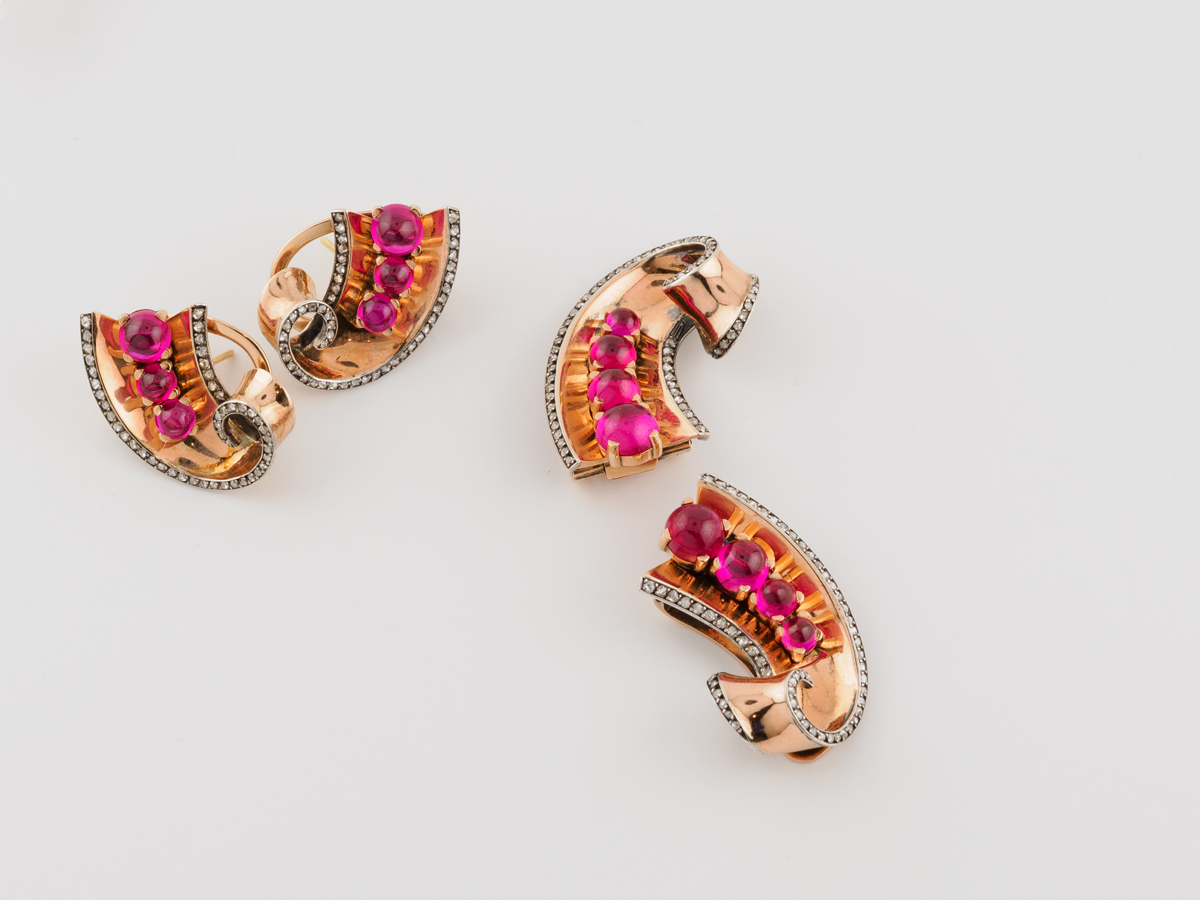 Set composto da orecchini e brooch in oro rosa 18kt.