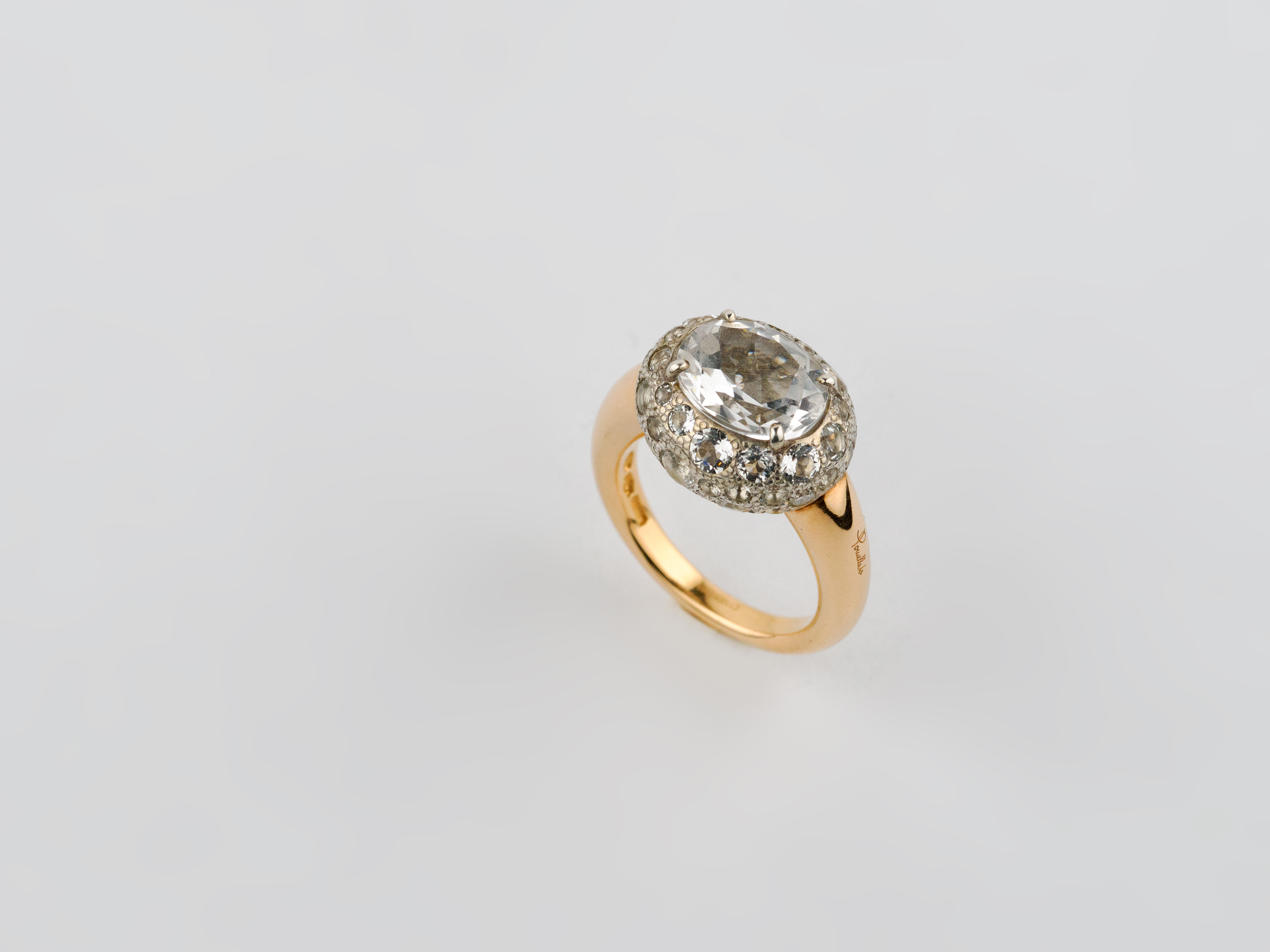 Anello in oro rosa e argento con topazio chiaro firmato "Pomellato" TABOO.