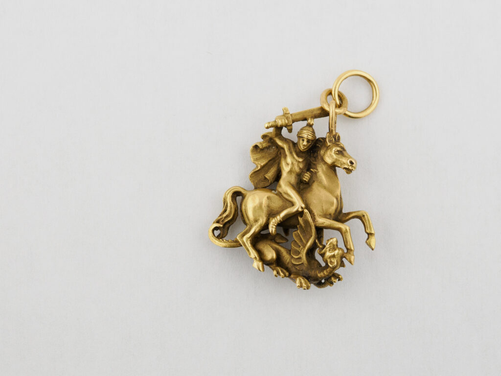 Ciondolo in oro giallo 18kt raffigurante San Giorgio col Drago.