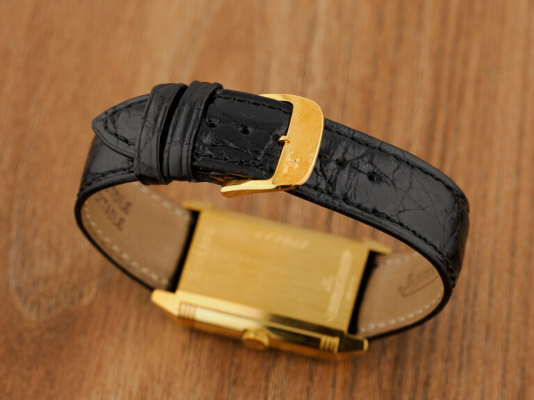 Jaeger Le Coultre Reverso Gran Taille in oro giallo 18kt con cinturino in pelle e fibbia ad ardiglione in oro giallo 18kt.
