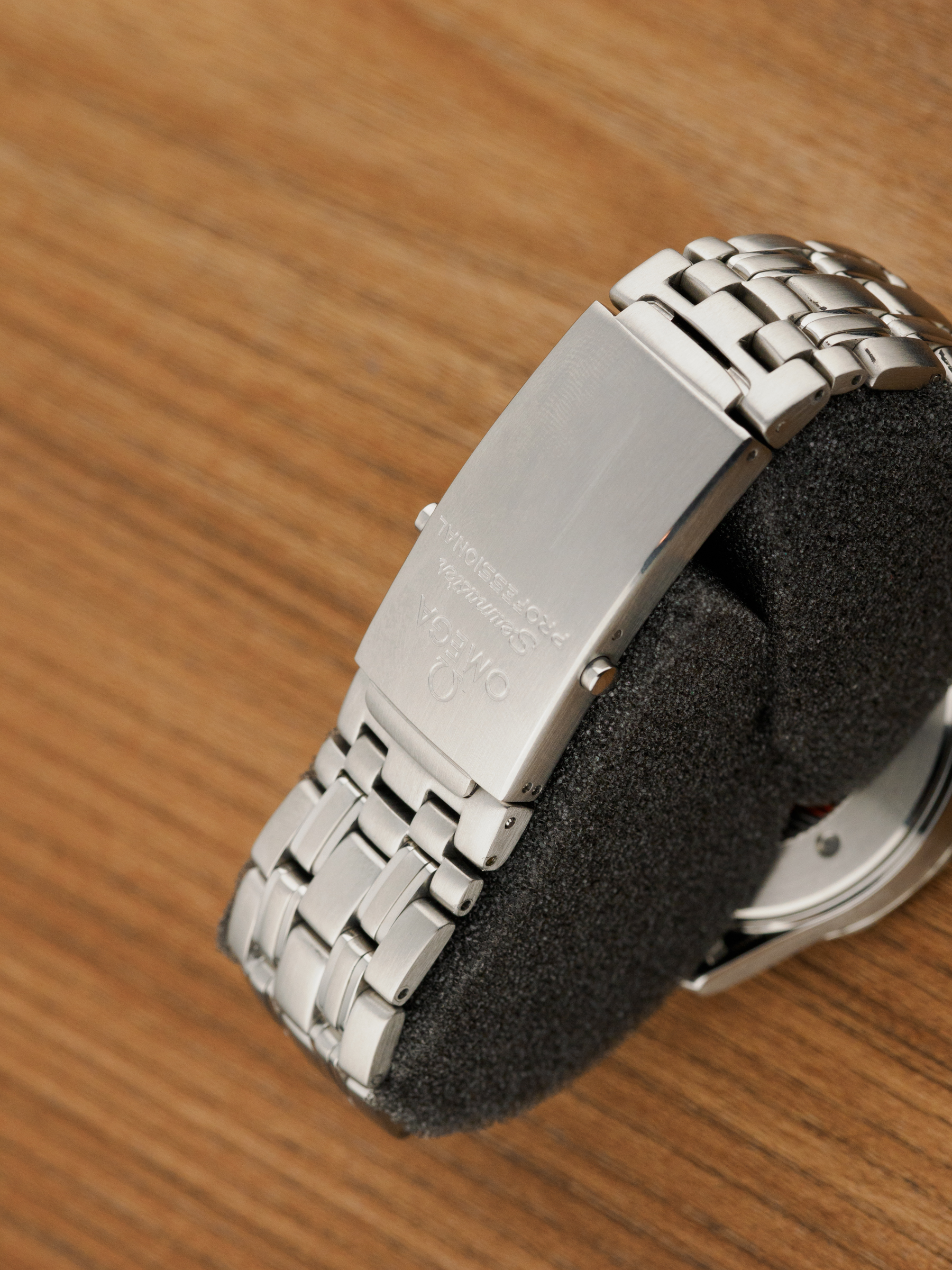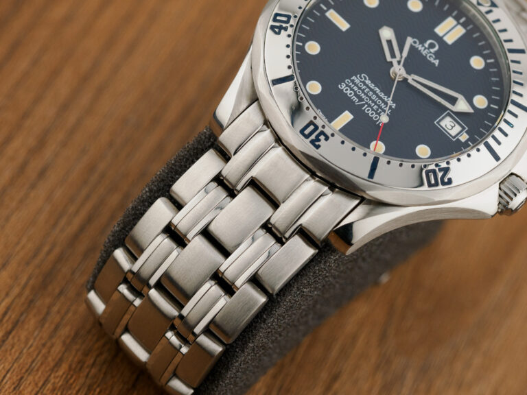 Omega Seamaster Diver Professional 300 in acciaio con quadrante blu.