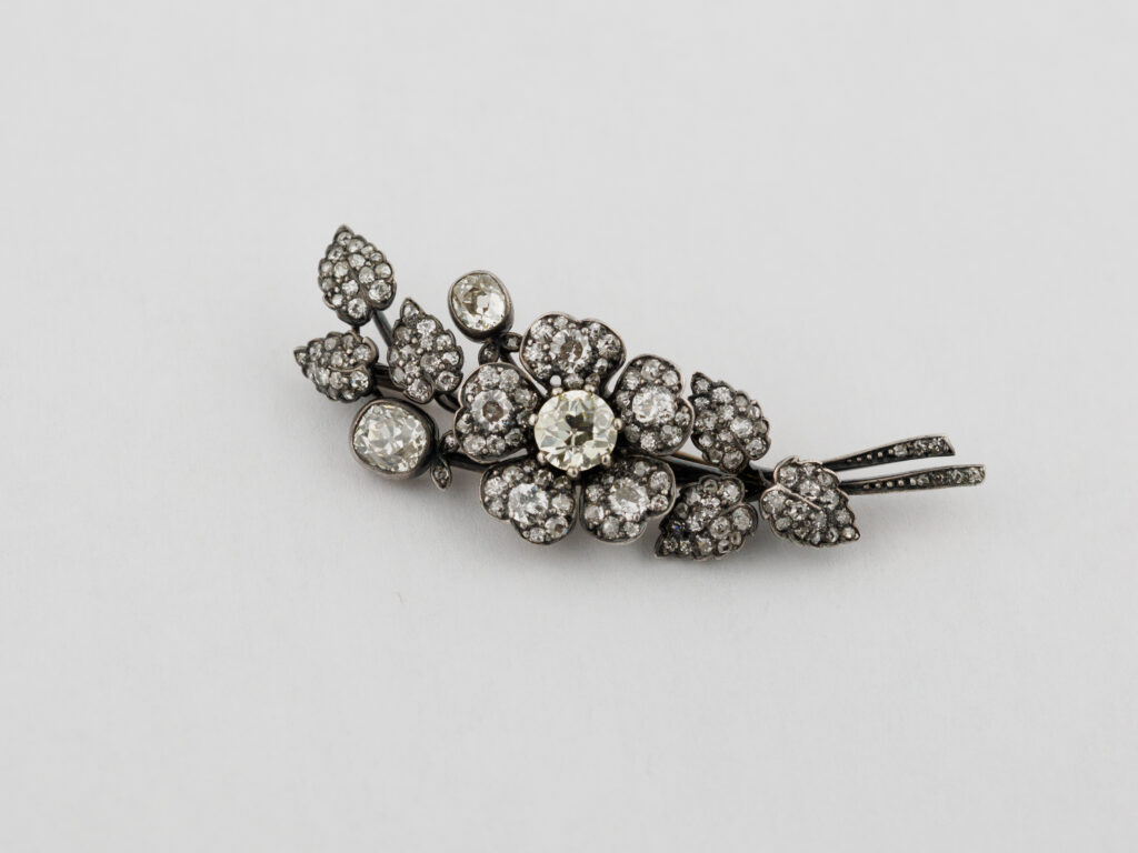 Spilla in oro e argento “Rametto” con diamanti taglio antico.
